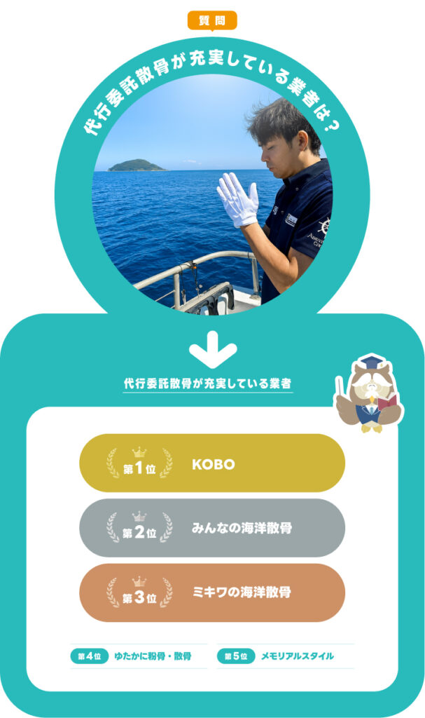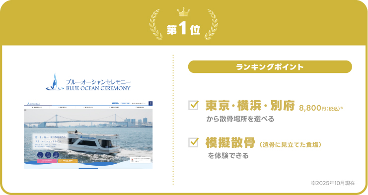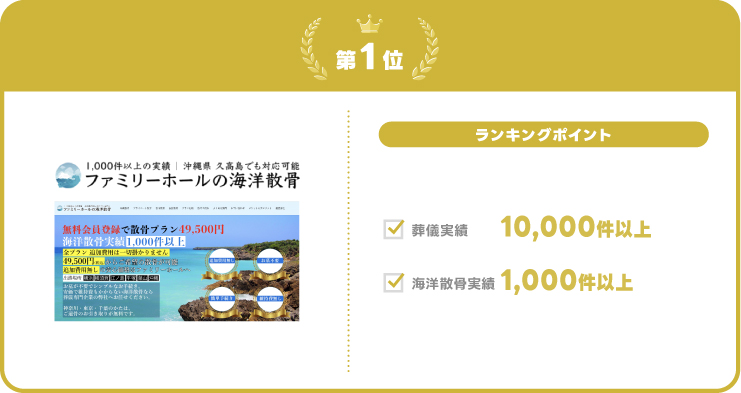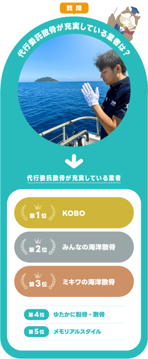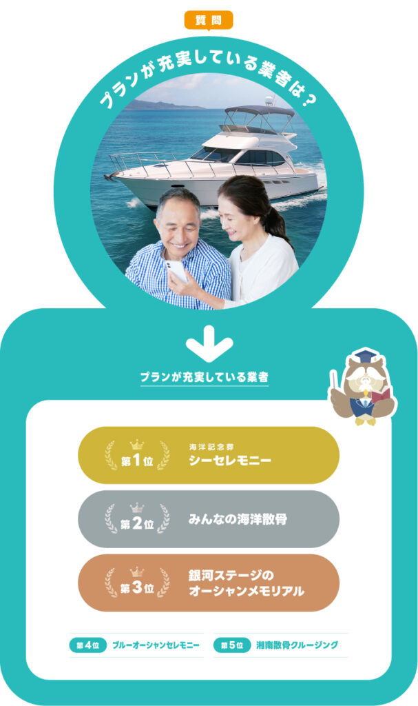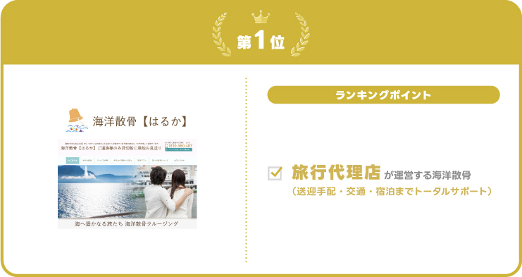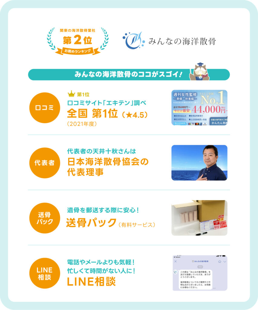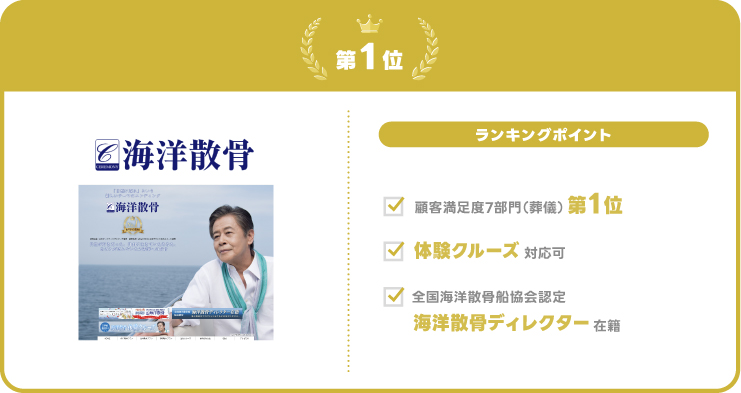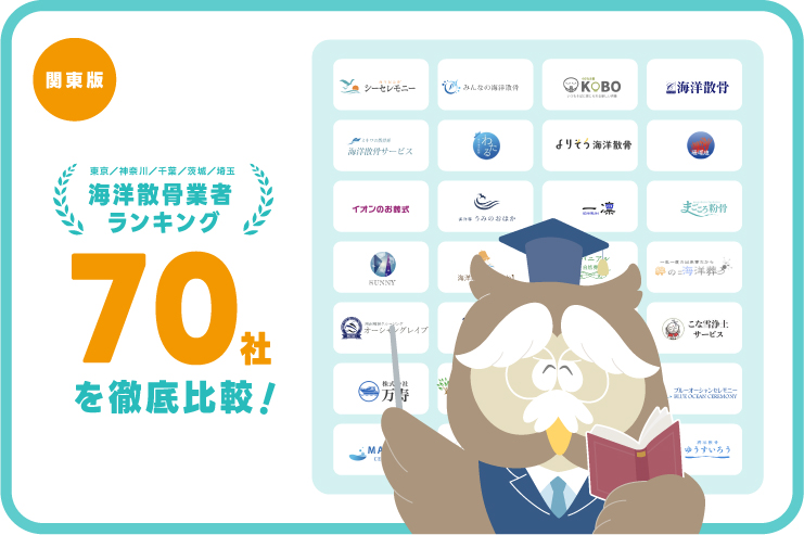 70社の関東の海洋散骨業社を比較し、45社がランキングに登場しますが