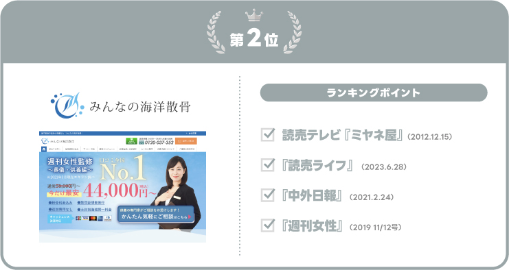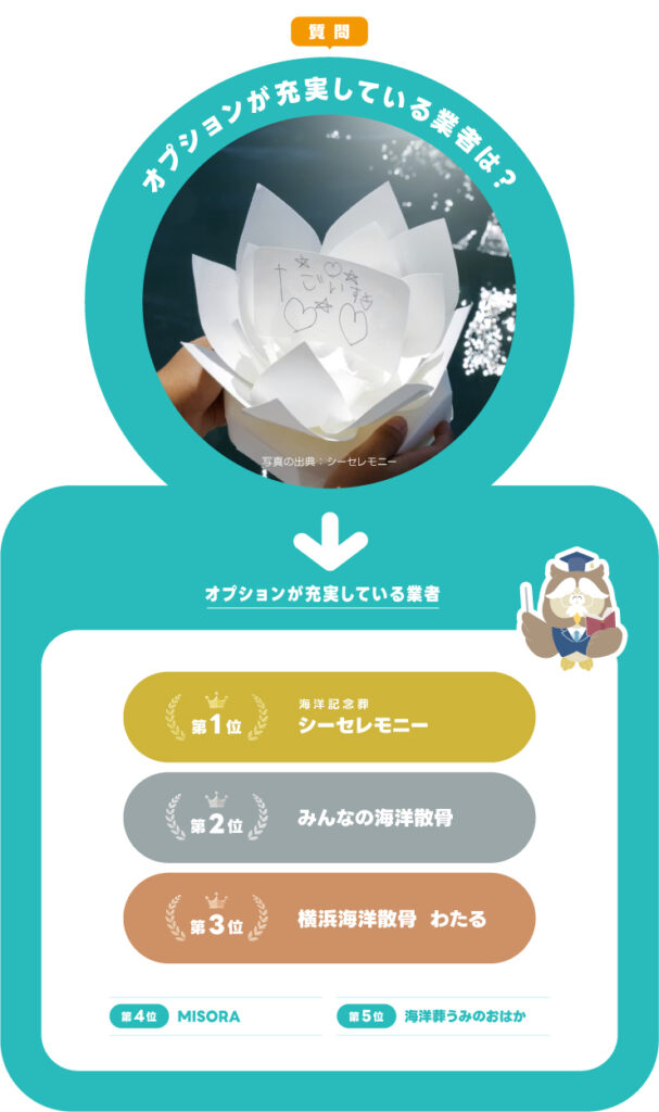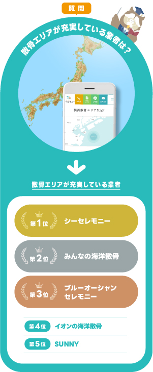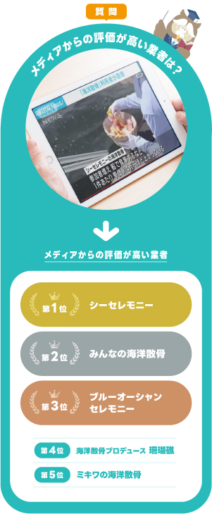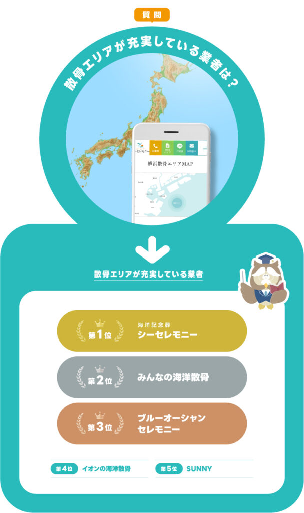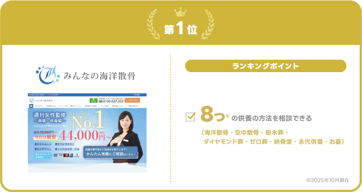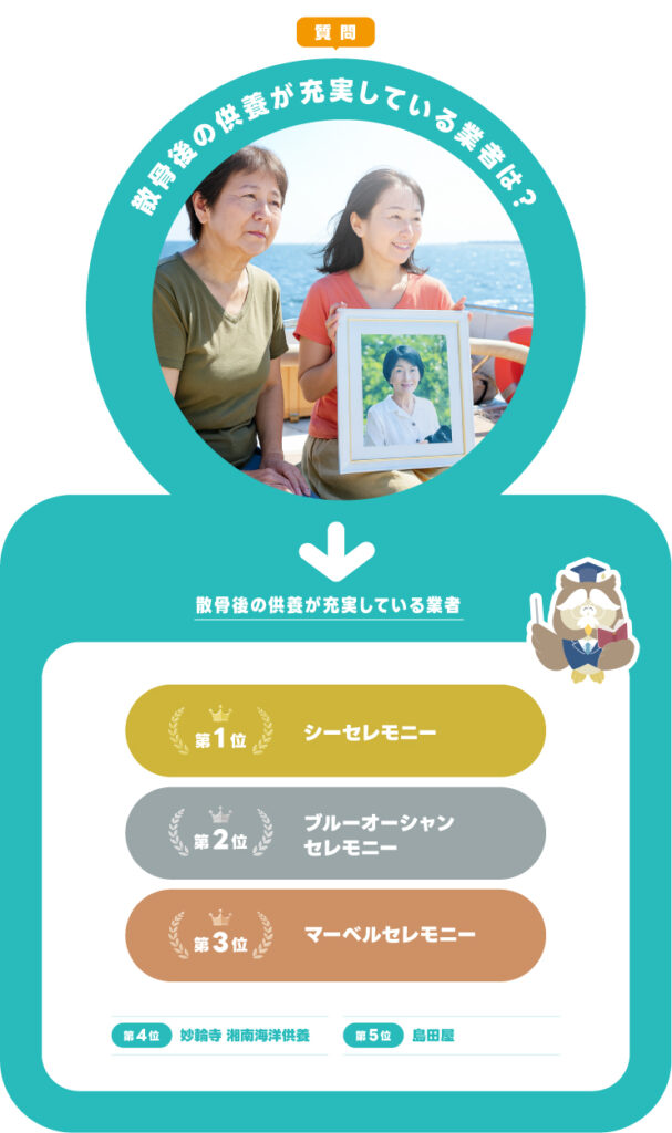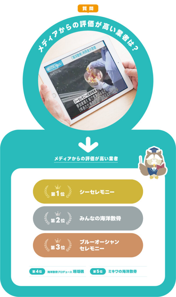 70社の関東の海洋散骨業社を比較し、45社がランキングに登場しますが