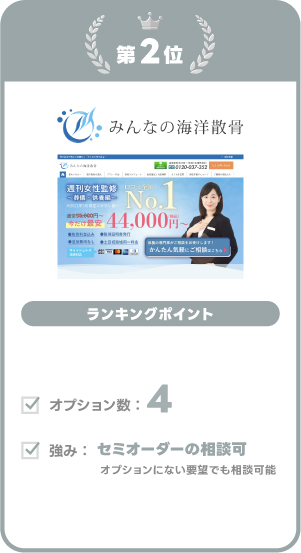 さらに、プランと選べるオプションの多さも魅力です。10種類のプランと15種類のオプションを組み合わせることで、希望に合わせた自由度の高い散骨が可能。セレモニーの演出や撮影サービス、精進料理など細かい部分まで自分たちらしくカスタマイズできます。
