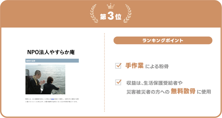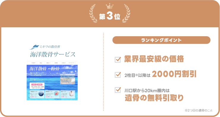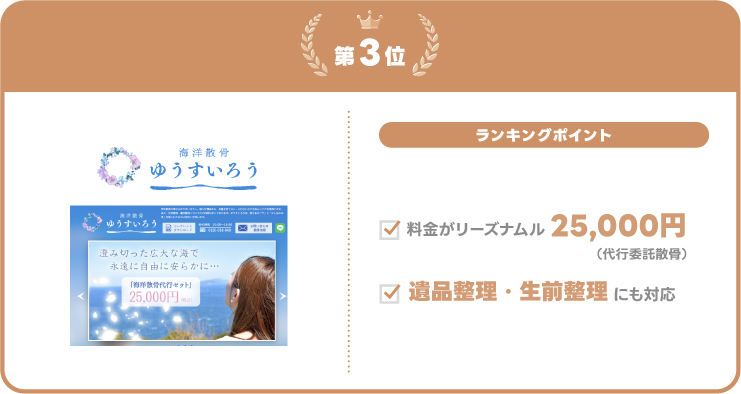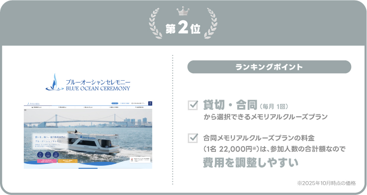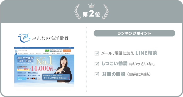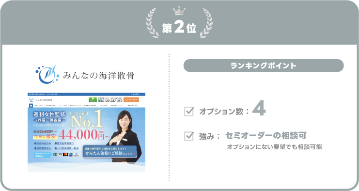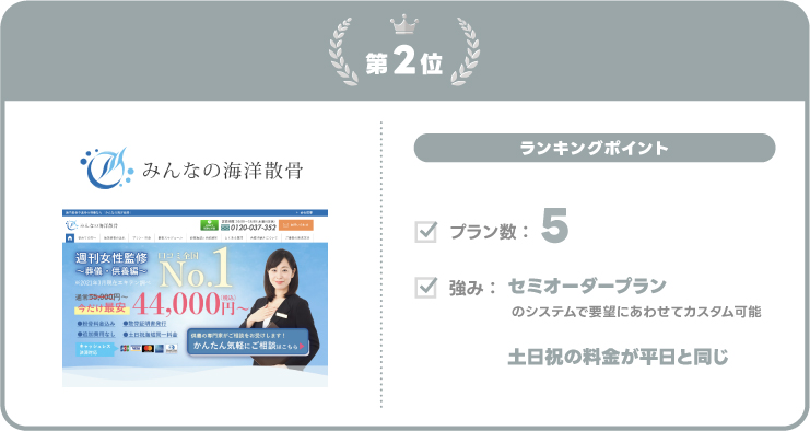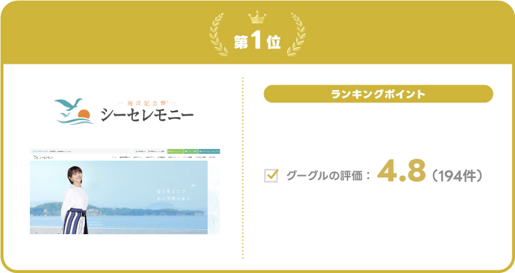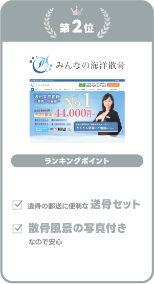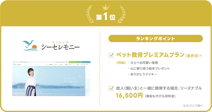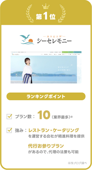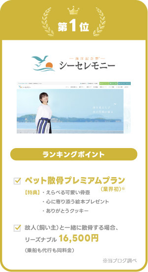 筆者が自信を持って強くおすすめしたいので、『 シーセレモニー 』その次に『 みんなの海洋散骨