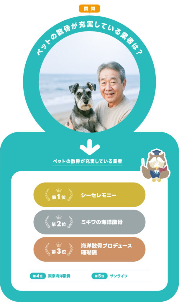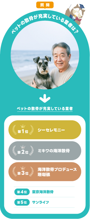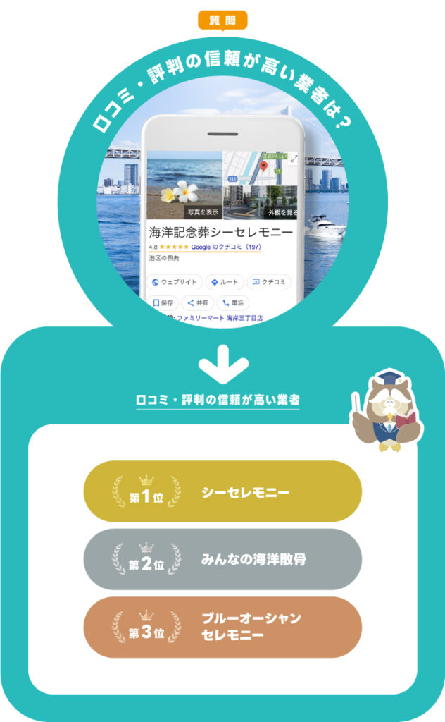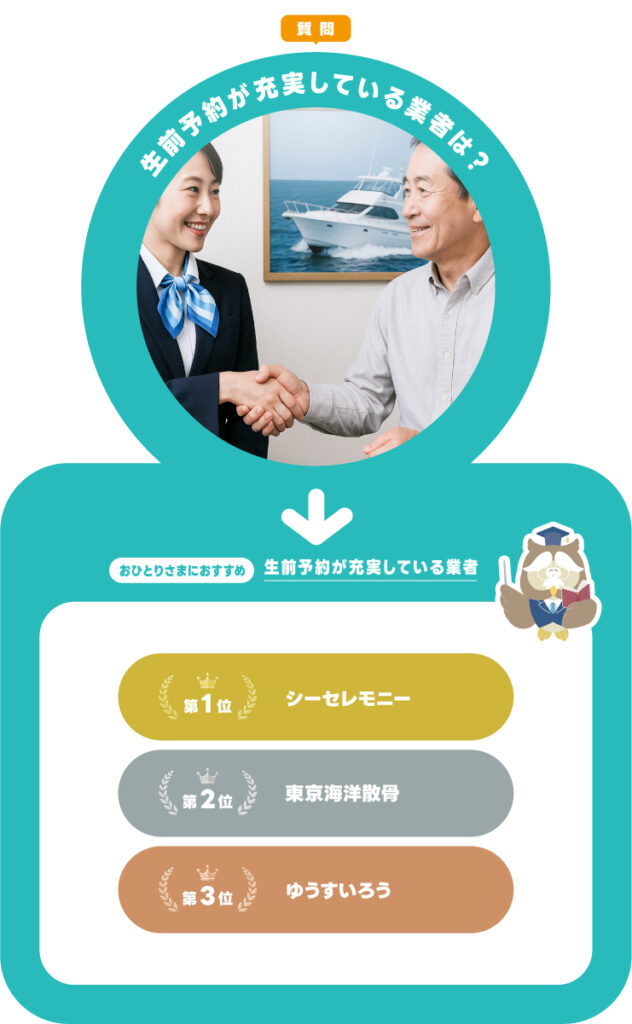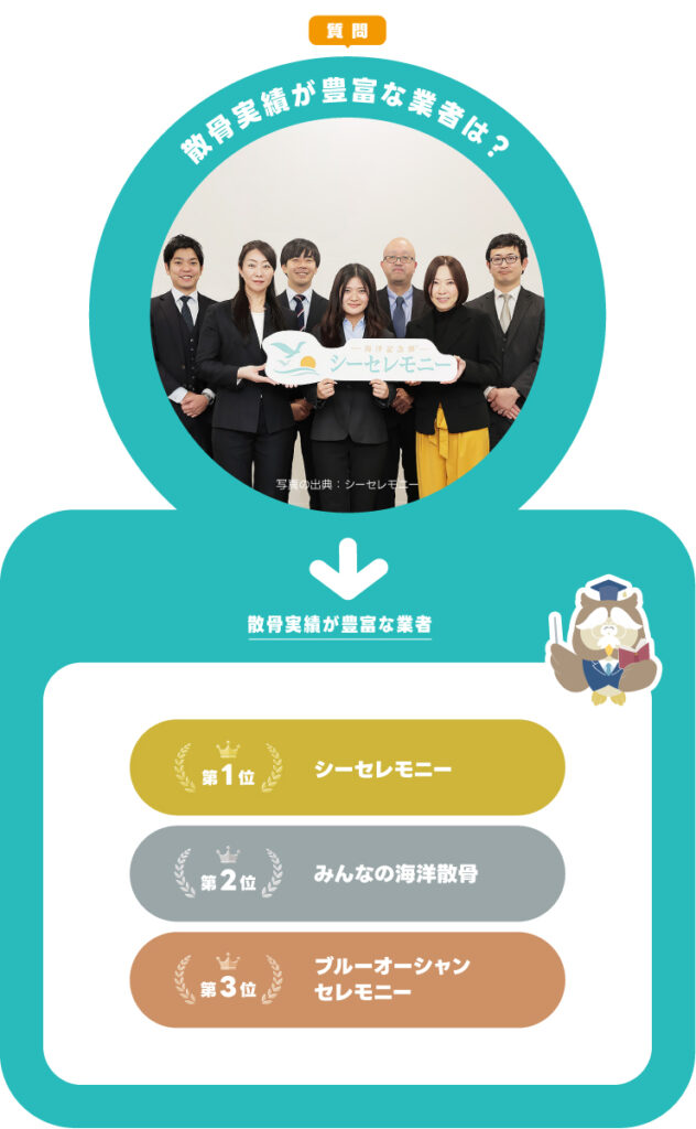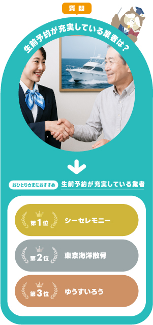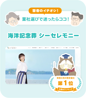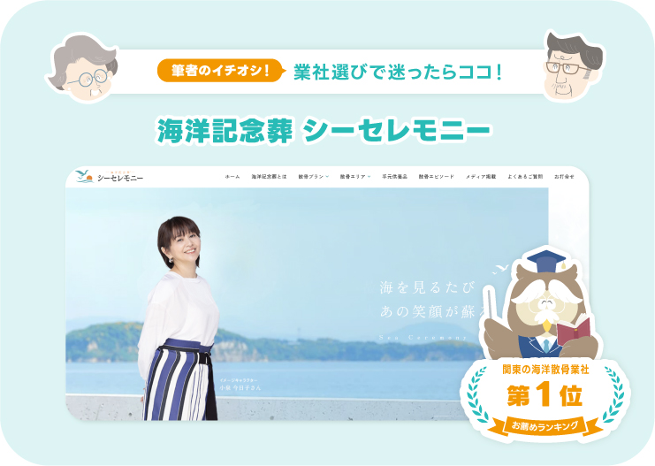 実績・お客様からの評価・サポート体制のすべてが整ったシーセレモニーは、「海洋散骨を失敗したくない」「心から納得できる海洋散骨をしたい」という人に筆者が最もおすすめしたい業者じゃ!