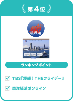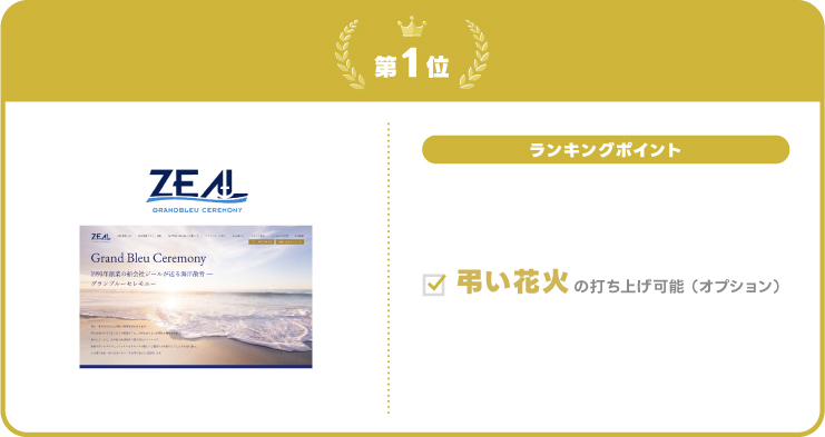 『 シーセレモニー 』は本ランキング記事の21項目のうち14項目で第1位を獲得。