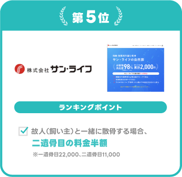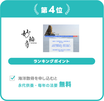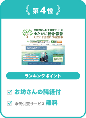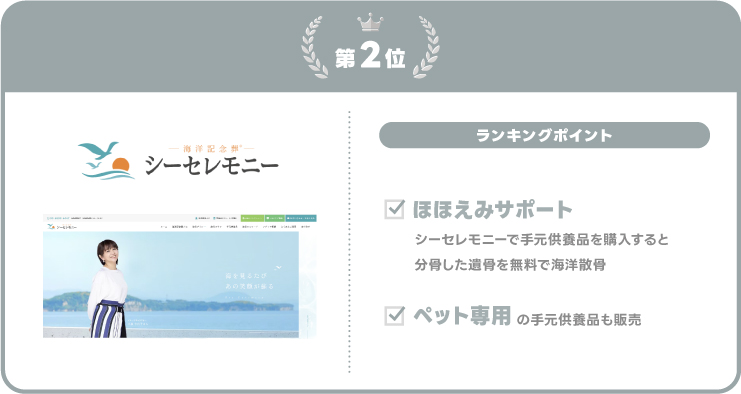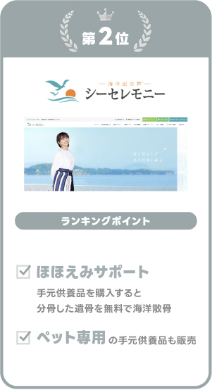 4つ目は「ほほえみサポート」。自宅で保管していた遺骨を、無料で代理散骨してくれる制度です。※『 シーセレモニー 』の手元供養品を購入した人が対象