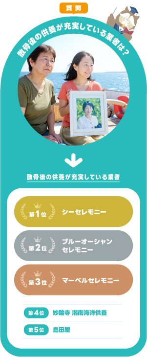 また、『 シーセレモニー 』が特に評価されているのが、散骨後の4つのアフターサポートです。