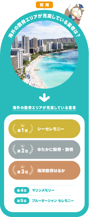 - 海外の散骨エリアが充実しているおすすめの業者は?