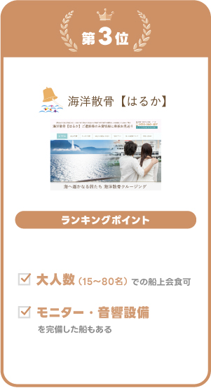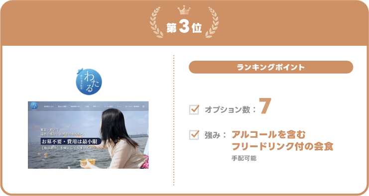 2つ目は「年忌法要クルーズ」。故人を散骨した海域を訪れ、年忌法要を行うことができます。