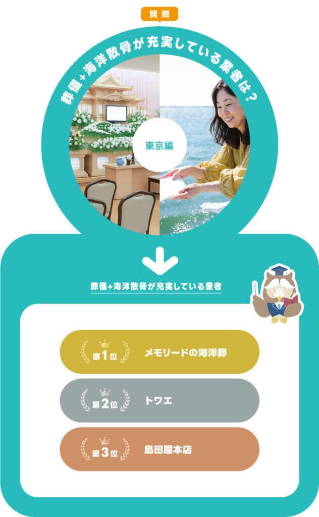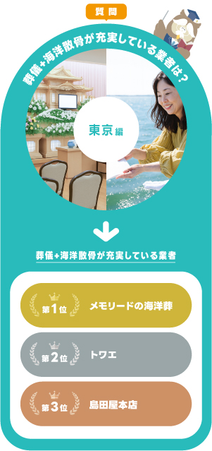 - 【東京編】葬儀+海洋散骨が充実しているおすすめの業者は?
