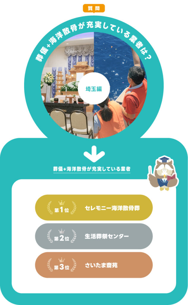 - 【埼玉編】葬儀+海洋散骨が充実しているおすすめの業者は?
