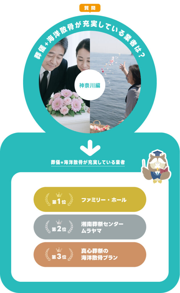 - 【神奈川編】葬儀+海洋散骨が充実しているおすすめの業者は?